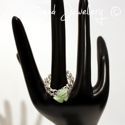 Green Catseye Crochet Ring